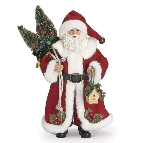 Red Christmas Santa with 2 Trees & Bird House - 10.5"