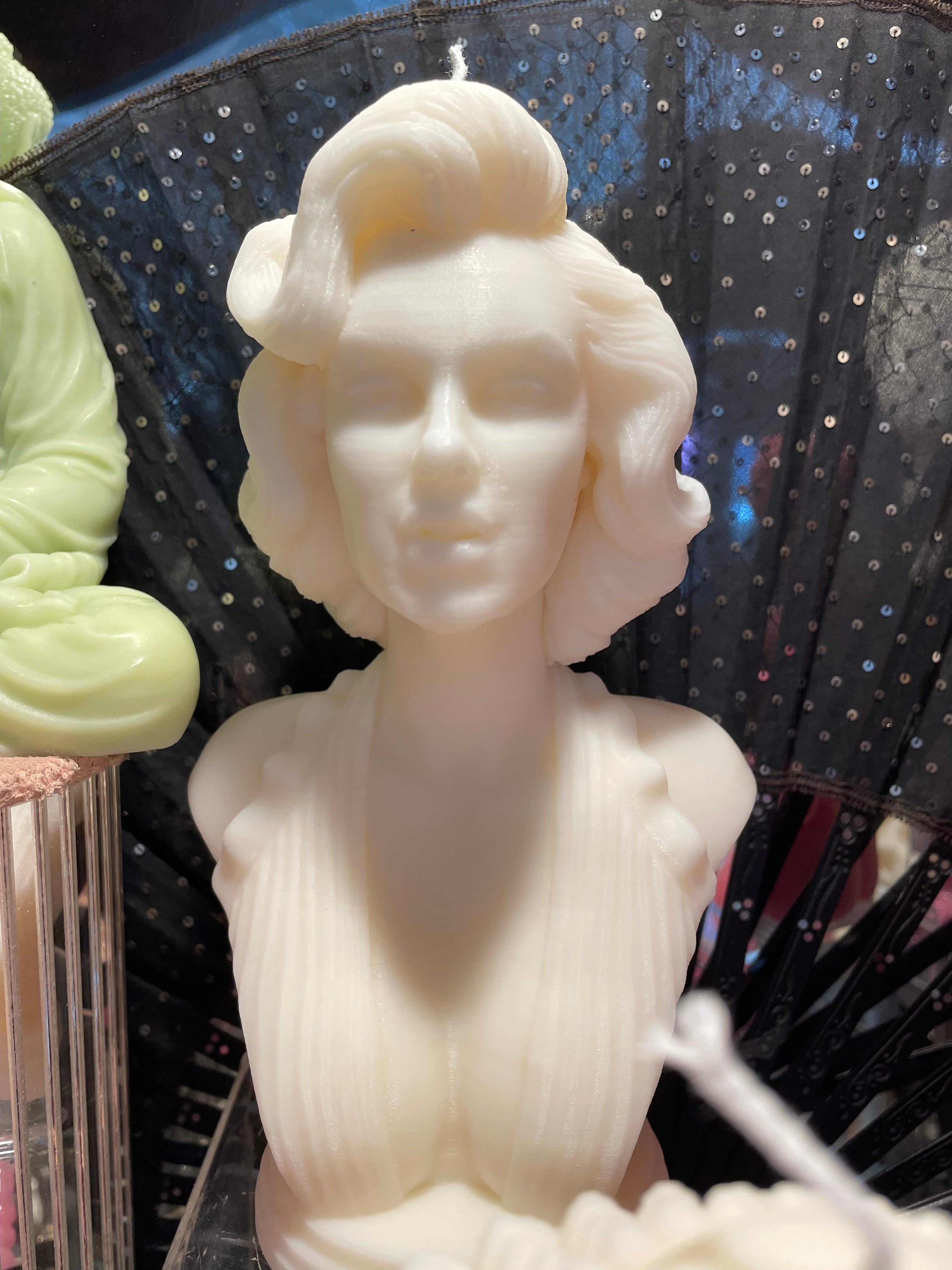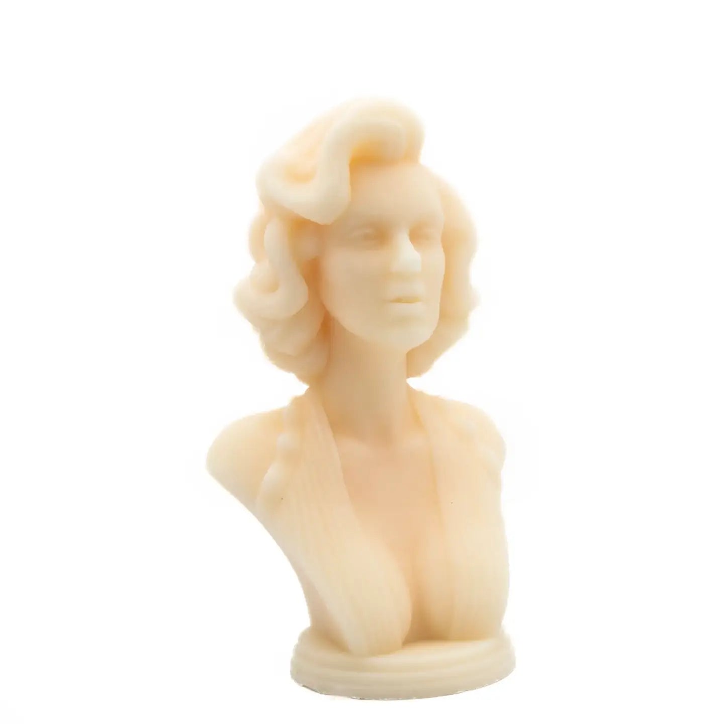 Classic, elegant, and quite the look. Add this large, Marilyn Monroe-inspired decorative candle to any space for an instant dose of charm and glam. A unique showstopper. Made with the perfect blend of 100% soy wax and beeswax for a more aesthetically pleasing hardened decorative candle without frosting Handcrafted in Canada. Each pillar is hand-poured and cast in small batches; handpainted with gold candle paint Made with sustainably sourced, 100% natural ingredients including lead-free cotton wicks for a clean burn Fragrance-free (unscented)